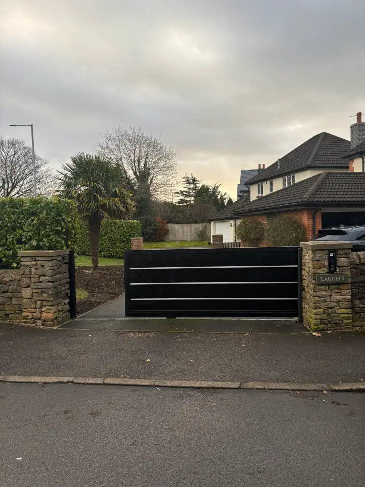 Installation of solid boarded aluminium electric sliding gate.